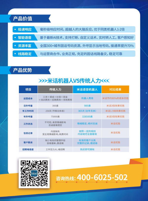 隨著云計(jì)算和人工智能的不斷發(fā)展,易米云通在2018年相繼推出云呼叫中心、智能語音機(jī)器人、智能在線客服、智能語音平臺(tái)、沃·云總機(jī)、號(hào)碼保護(hù)平臺(tái)等領(lǐng)先行業(yè)的系列產(chǎn)品與創(chuàng)新技術(shù)。截止到目前,易米云通的服務(wù)已經(jīng)覆蓋了全國26個(gè)省份、300多個(gè)城市、發(fā)展了100萬+企業(yè)級(jí)付費(fèi)用戶,承載的語音話務(wù)量已經(jīng)達(dá)到了每月近3億分鐘。