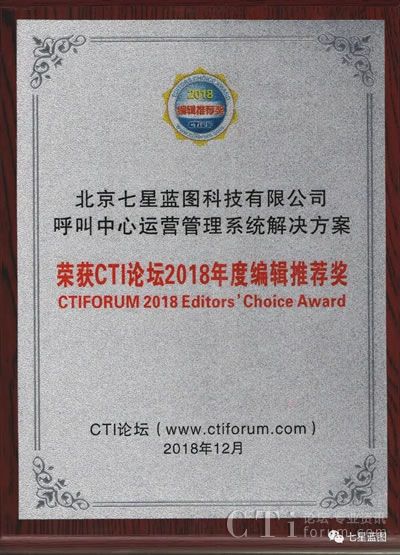 本次活動中,七星藍(lán)圖的運營管理解決方案非常榮幸地獲得了“2018年度編輯推薦獎”