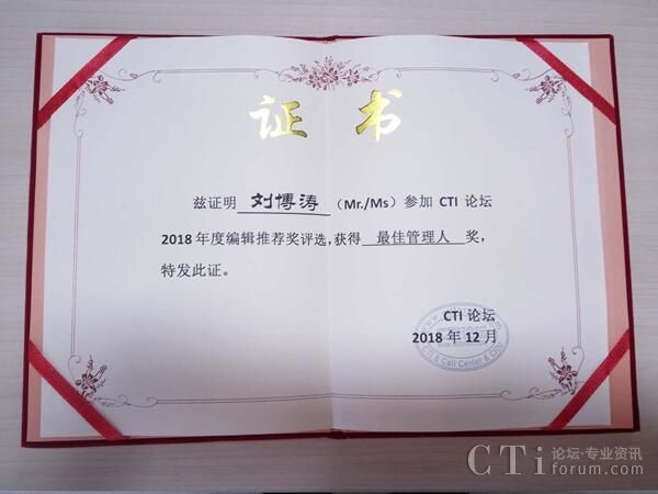 12月20日,“行業(yè)應(yīng)用及市場分析主題沙龍暨2018年度CTI論壇編輯推薦獎頒獎”活動在北京成功召開,現(xiàn)場正式公布了“2018年度CTI論壇編輯推薦獎”的評選結(jié)果。通信大數(shù)據(jù)專家電話邦一舉斬獲“呼叫中心運營與效能貢獻獎”,電話邦副總裁劉博濤獲評“最佳管理人獎”。