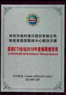 依托CTI論壇多年來(lái)積累的強(qiáng)大行業(yè)資源和經(jīng)驗(yàn),經(jīng)過(guò)一個(gè)月的激烈評(píng)選和廣泛考察,由集時(shí)通訊提出的“智能客服型聯(lián)絡(luò)中心解決方案”榮獲“2018年度CTI論壇編輯推薦獎(jiǎng)”!