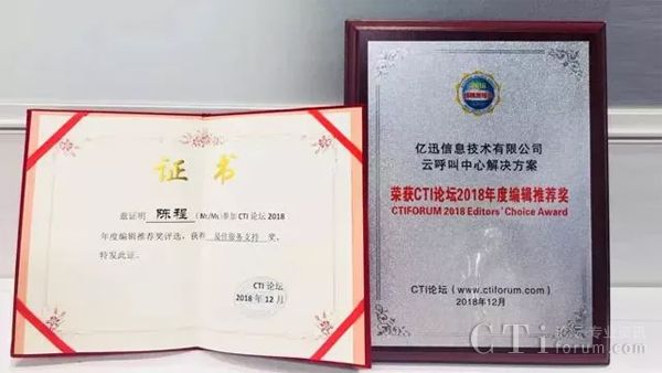 12月20日,在CTI論壇舉辦的“行業(yè)應(yīng)用及市場(chǎng)分析主題沙龍”活動(dòng)上,大中華區(qū)領(lǐng)先的全媒體交互中心解決方案供應(yīng)商——億迅信息技術(shù)有限公司(eSOON)一舉奪得CTI編輯推薦獎(jiǎng)“云呼叫中心解決方案”、“年度最佳服務(wù)支持獎(jiǎng)”等兩項(xiàng)大獎(jiǎng)。CTI論壇編輯推薦獎(jiǎng)由中國(guó)領(lǐng)先的信息和通信技術(shù)行業(yè)網(wǎng)站CTI論壇舉辦,評(píng)選范圍涵蓋主要ICT技術(shù)和產(chǎn)品應(yīng)用。本次和億迅一起參加活動(dòng)的還有Genesys、華為、中興等ICT(信息通信技術(shù))行業(yè)領(lǐng)先企業(yè)。