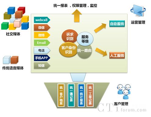 RMCC富媒體聯(lián)絡(luò)中心是集電話、短信、傳真、WebCall、微信、微博、Email等多媒體應(yīng)用為一體,通過富媒體聯(lián)絡(luò)中心平臺進行統(tǒng)一接入、統(tǒng)一路由、統(tǒng)一處理、統(tǒng)一管理。