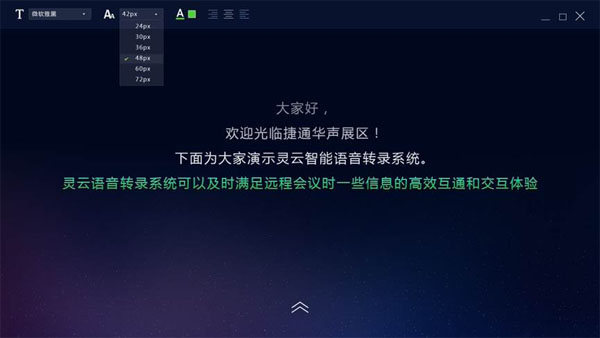 發(fā)言實(shí)時(shí)上屏:針對(duì)不同會(huì)議的需求,系統(tǒng)可將實(shí)時(shí)語音轉(zhuǎn)寫的結(jié)果,以彈幕的形式展現(xiàn)在大屏上,方便現(xiàn)場(chǎng)聽會(huì)者閱讀。