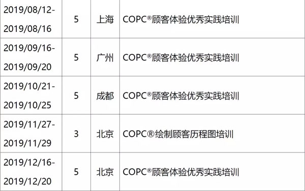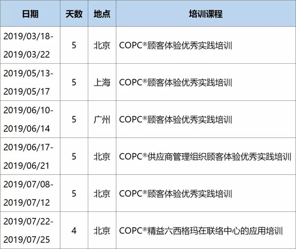 2019年COPC中國區(qū)公開課培訓(xùn)計(jì)劃