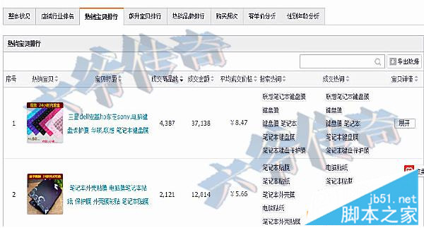 大家看圖片上,排行第2的寶貝,它的搜索熱詞里有很多與"貼膜"相關(guān)的關(guān)鍵詞,但是它的成交熱詞里與"貼紙"相關(guān)的詞會更多一些。因為"貼膜"這個詞比較寬泛,它可以包含外殼膜和屏幕膜等等,而"貼紙"這個詞對于這個寶貝來說更加精準。所以標題當中添加更加精準的包含“貼紙”這個詞的長尾組合詞會更加有利于促成成交。