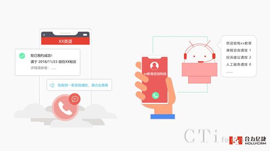 應用場景二:上課通知提醒。當家長/學員成功預約課程后,通過語音/文字的方式通知其上課的時間、地點等信息。合力億捷智能云客服系統(tǒng)可調用接口,自動呼叫成功預約課程的學員,并支持教育企業(yè)業(yè)務系統(tǒng)點擊外呼,支持短信發(fā)送通知等。