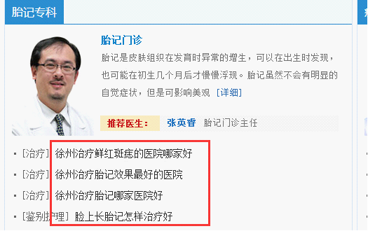 就上上圖截圖的一樣,就目前而言:有多少醫(yī)療站沒這么做過?而這樣做的站點,基本上都是必死的,但是直到現(xiàn)在也沒有認識到問題的所在。這樣的是比較嚴重的,至于輕一點的還有如:濕疹的發(fā)病原因是什么,這樣大量的疑問標題,均不建議出現(xiàn)在普通的醫(yī)療網(wǎng)站上去,此類型的“標題”正常應(yīng)當(dāng)使用的是:問答平臺類型的網(wǎng)站。