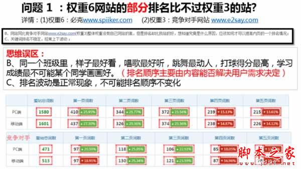 Q:為何網(wǎng)站同競爭對手網(wǎng)站(權(quán)重3)對比,對方整體權(quán)重沒有自己網(wǎng)站的高,但是部分排名卻比我站的好,想知道究竟是什么原因,應(yīng)該如何才可以提高內(nèi)頁的一個排名情況