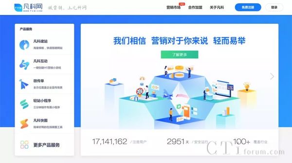 目前凡科已然是國內(nèi)最大的營銷服務(wù)平臺,凡科一直致力為中小企業(yè)提供互聯(lián)網(wǎng)營銷服務(wù),推出多元、高效、易用的互聯(lián)網(wǎng)工具,幫助企業(yè)提升自己的營銷競爭力。