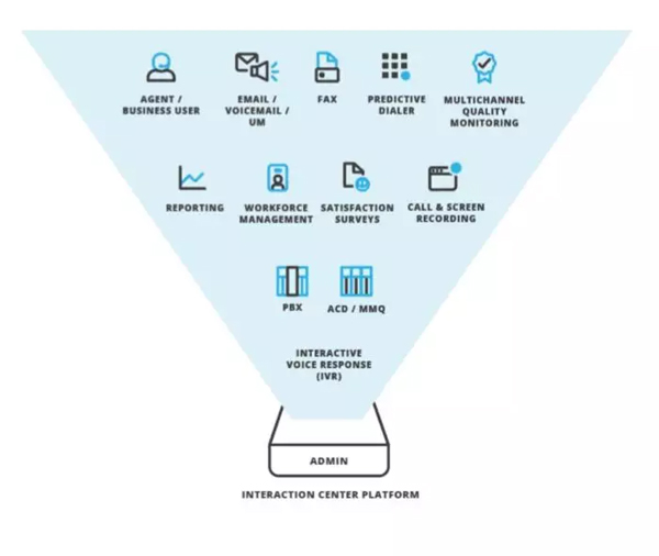 一體化的解決方案,一臺主服務(wù)器囊括了呼叫中心的所有核心功能