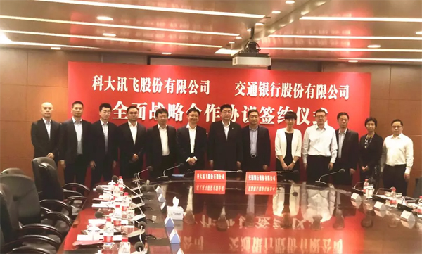 10月12日,科大訊飛與交通銀行在上海簽署了全面戰(zhàn)略合作協(xié)議。根據(jù)協(xié)議,將依托科大訊飛先進的智能語音和人工智能技術(shù),助力推動交通銀行信息技術(shù)創(chuàng)新發(fā)展,建設(shè)數(shù)字化、智能化特色的科技金融銀行。