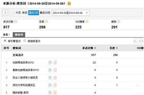 網(wǎng)站關鍵詞的分析是網(wǎng)站優(yōu)化的頭等大事,它關系到網(wǎng)站的定位(如訪客定位、內(nèi)容定位)、網(wǎng)站轉(zhuǎn)化率等等。確定好關鍵詞之后,后面的工作都比較容易開展了。那如何進行關鍵詞分析呢,除了利用關鍵詞工具幫我們分析之外,流量統(tǒng)計工具里的搜索詞也是一種寶貴的資源,可以加以利用。
