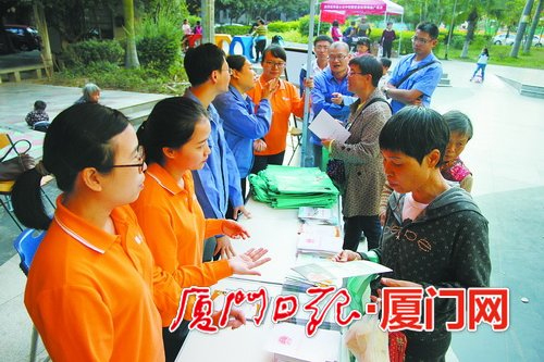 呼叫中心員工進(jìn)社區(qū)開(kāi)展燃?xì)獍踩麄髦驹阜?wù)。(供圖/廈門(mén)華潤(rùn)燃?xì)猓?br />