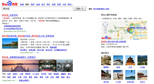 清明小長(zhǎng)假即將到來,使用百度搜索諸如“頤和園”、“故宮”等景點(diǎn)時(shí),搜索結(jié)果頁(yè)面會(huì)展現(xiàn)出相關(guān)景點(diǎn)的多個(gè)搜索結(jié)果,包括結(jié)合LBS的景區(qū)地圖、景點(diǎn)人群分布圖、周邊交通信息、商鋪信息、園林特色、景點(diǎn)推薦等,為網(wǎng)友提供全方位的游覽信息,十分方便快捷。