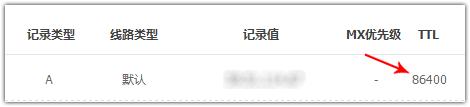 注意:TTL值會(huì)影響域名解析記錄的緩存時(shí)間,當(dāng)修改域名解析IP后,新的解析記錄最多可能需要經(jīng)過(guò)TTL指定的時(shí)間后才會(huì)生效。如將 TTL 設(shè)置成 86400 秒,解析記錄最多可能需要1天才能在全網(wǎng)生效。