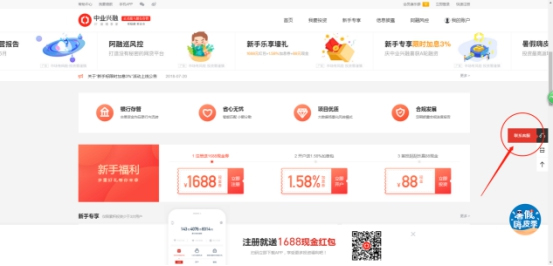打開中業(yè)興融官網(wǎng)(www.zyxr.com),在頁面右邊有三個選擇按鈕,點(diǎn)擊第一個“聯(lián)系客服”;