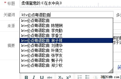 只要我們用好這個Tags標簽的話,就可以源源不斷地為我們創(chuàng)造頁面內(nèi)容。譬如說,筆者想在自己的網(wǎng)站內(nèi)更新一篇介紹“在水中央”這首歌的文章,那么當筆者撰寫完畢后,只要在輸入Tags的關(guān)鍵詞欄目里添加“ktv必點粵語歌曲”和“林子祥”兩個關(guān)鍵字后,那么其實就會同步更新三個頁面,分別是“在水中央”的文章頁、“ktv必點粵語歌曲”以及“林子祥”這兩個關(guān)鍵字的標簽頁,如圖4。