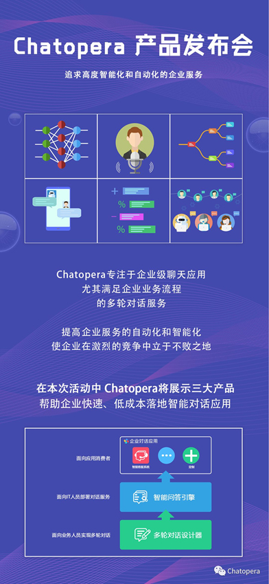 在經(jīng)過了許多天沒日沒夜的工作,過著焚膏繼晷式的生活,我們終于可以向大家介紹這種方案:面向企業(yè)業(yè)務(wù)人員的多輪對(duì)話設(shè)計(jì)器;面向企業(yè)IT部門的智能問答引擎;智能客服系統(tǒng),一個(gè)集成了智能問答引擎的客服應(yīng)答系統(tǒng)。Chatopera產(chǎn)品發(fā)布會(huì)于2018年7月21日在科技寺(北新橋)舉辦了,歡迎業(yè)界朋友交流提出寶貴的意見。