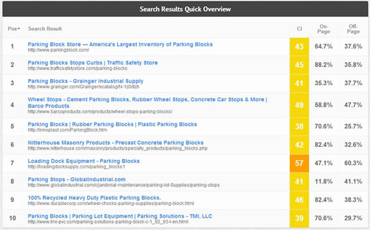 找到相關(guān)的月搜索量可以使用Google’s keyword tool,但它并沒有提供更多的信息。AdWords™提供了關(guān)鍵詞的競爭程度,但你要需要知道這些已經(jīng)在這些關(guān)鍵詞搜索結(jié)果上獲得排名的網(wǎng)站的權(quán)重。Mozbar extension for chrome, 這個工具可以給我一些詳細的數(shù)據(jù)。但要做更復(fù)雜的分析,推薦使用SerpIQ,如下圖所示