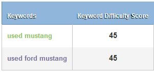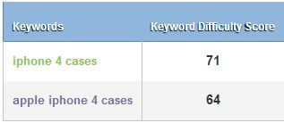 關(guān)鍵字難度數(shù)據(jù)是通過 SEOmoz’s keyword difficulty tool 獲取,根據(jù)經(jīng)驗,一般包括有品牌的長尾關(guān)鍵詞會比較難競爭,9/10的長尾關(guān)鍵詞一般都要比主體和頭部關(guān)鍵詞容易