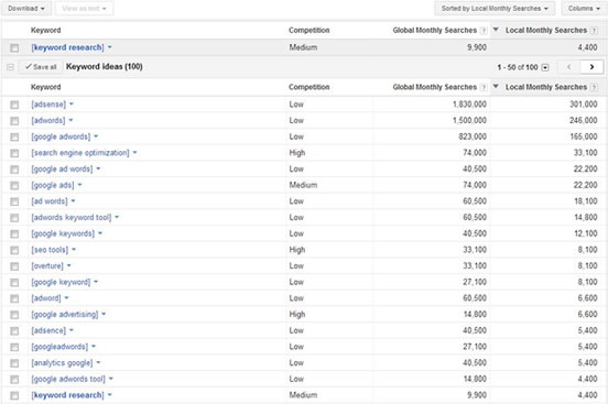 這里會用到很多工具,Google提供的Google’s keyword tool. 必然不可少。在利用這個工具的時候,記得選上精確匹配
