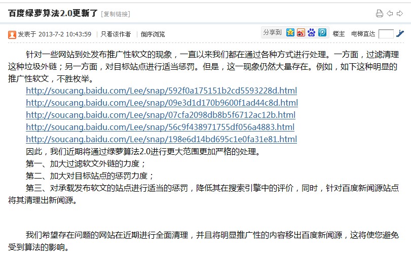 害怕度娘的算法,度娘并在百度綠蘿算法2.0中說到已經(jīng)公布嚴懲作弊外鏈。
