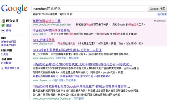 三、inanchor:指令——鏈接錨文字中包含關(guān)鍵詞(google支持)