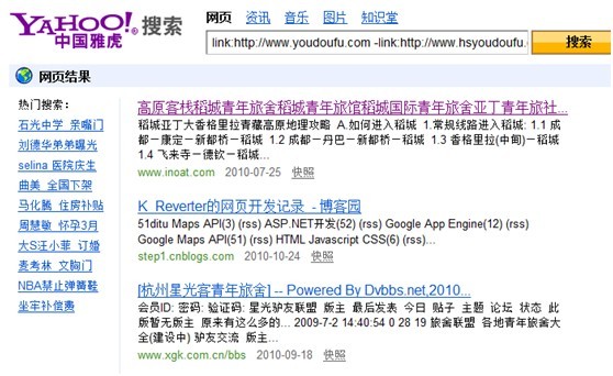 注意的事:在yahoo中查看反向鏈接是需要在網(wǎng)址前增加http://的哦。目前查看反向鏈接最全面最有效的方式是yahoo的查詢