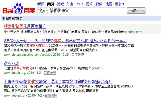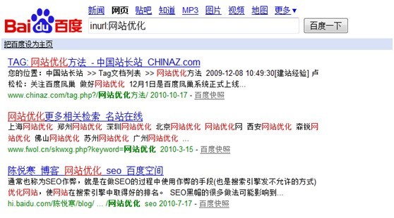 關(guān)鍵詞“網(wǎng)站優(yōu)化”在搜索結(jié)果中有鏈接,這是大家經(jīng)常在做外部鏈接時(shí)候常用的錨文本,檢查是否有效果的最有效方式,下圖為搜索結(jié)果的第一條中含有錨文本的區(qū)域。便于大家更容易去理解這條命令,可惜的是inanchor:只適合在google中使用。