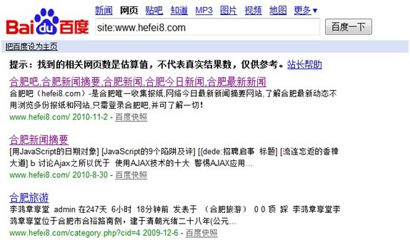 site指令很容易理解,是檢查網(wǎng)站被搜索友情抓取的頁(yè)面,很多做優(yōu)化的人非常重視這個(gè)site結(jié)果,在前段時(shí)間百度公布的搜索引擎優(yōu)化指南中說(shuō)到baidu中的site結(jié)果僅供參考,非準(zhǔn)確的結(jié)果。經(jīng)常用site的人也會(huì)發(fā)現(xiàn),你往收錄也的后面點(diǎn)擊的時(shí)候,會(huì)發(fā)現(xiàn)收錄總數(shù)在不斷增加會(huì)減少。所以此條指令雖然常用,但是不能作為唯一標(biāo)準(zhǔn)。