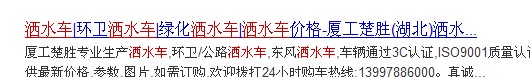 這個(gè)網(wǎng)站標(biāo)題就寫(xiě)的太長(zhǎng),后面就跟本不知道寫(xiě)的是什么內(nèi)容,其實(shí)這個(gè)標(biāo)題完全不用出現(xiàn)那么多次“灑水車(chē)”,要是合理排序的話,根本用不了這么多字,可以直接寫(xiě)成“環(huán)衛(wèi)綠化灑水車(chē)價(jià)格-廈工楚勝(因?yàn)楹竺娴奈乙矝](méi)看,所以就沒(méi)寫(xiě),應(yīng)該是公司的名稱)”,這樣的話搜索“灑水車(chē)”、“環(huán)衛(wèi)灑水車(chē)”、“綠化灑水車(chē)”、“灑水車(chē)價(jià)格”你的網(wǎng)站名稱都是符合要求的,這樣用戶看起來(lái)也舒服。