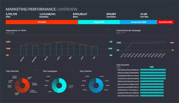 Datorama報表和儀表板集中了KPI和計算管理,通過拖放幾分鐘內(nèi)即可構(gòu)建出一個儀表板。Datorama平臺專為營銷人員設(shè)計,能夠為組織中的每個利益相關(guān)者和貢獻者構(gòu)建正確的儀表板和報告-這樣您的團隊就可以更有效地協(xié)作并做出更好的決策來推動您的營銷和業(yè)務發(fā)展。這意味著支持你需要的每個營銷活動,渠道,跨渠道和領(lǐng)導視圖。更棒的是,你可以輕松創(chuàng)建個性化模板,創(chuàng)建跨團隊和區(qū)域的最佳視圖,并無限制地自定義設(shè)計儀表板。