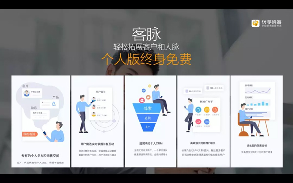 7月3日,移動CRM領(lǐng)導(dǎo)者紛享銷客推出基于微信小程序開發(fā)的免費產(chǎn)品“客脈”。這是一款集智能名片、微信群推廣、個人客戶管理、AI分析等功能為一體的銷售獲客與拓展人脈的“新裝備”,并與紛享銷客CRM無縫集成??兔}小程序,是紛享銷客CRM從銷售管理走向營銷賦能的理念延伸與產(chǎn)品落地。