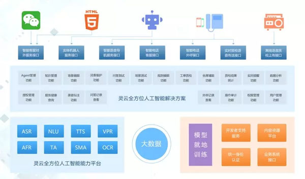靈云人工智能聯(lián)絡(luò)中心方案可提供一站式的智能問答服務(wù)、智能語音導(dǎo)航、智能外呼、實(shí)體機(jī)器人、自動語音質(zhì)檢、實(shí)時話術(shù)輔助、語音內(nèi)容分析等智能應(yīng)用解決方案,包括: