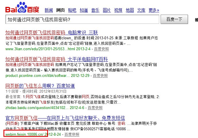 不過,“網(wǎng)頁版飛信”“飛信網(wǎng)頁版”都已經(jīng)排在百度搜索結(jié)果的第一位,即使不改名也無大礙,百度視二者是一個東西了。