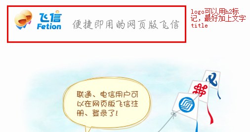(圖 – “登錄網(wǎng)頁版飛信”可以加為h1標(biāo)簽)