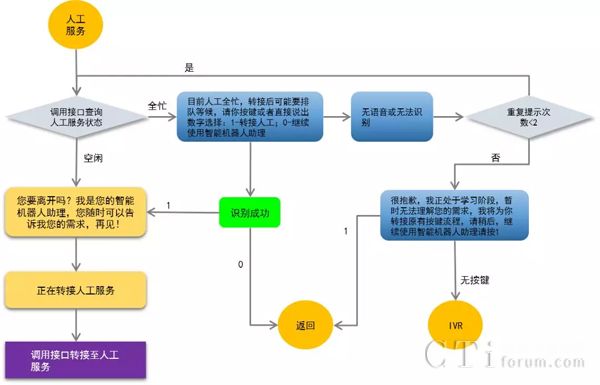 語音識(shí)別技術(shù)在實(shí)際應(yīng)用當(dāng)中,由于地域發(fā)音差異、方言及業(yè)務(wù)差異等因素,有效識(shí)別準(zhǔn)確率能達(dá)到85%已經(jīng)很高,如果AI業(yè)務(wù)經(jīng)常出現(xiàn)“對(duì)不起”、“我沒有聽清楚”、“你是否重復(fù)”等,必定會(huì)引起用戶反感,體驗(yàn)好感度還不如選擇按鍵轉(zhuǎn)接人工。目前的AI應(yīng)用在系統(tǒng)前端做簡(jiǎn)單的過濾,回答簡(jiǎn)單的問題,業(yè)務(wù)流程較為單一時(shí)可由AI來實(shí)現(xiàn),然后再由人工坐席做進(jìn)一步處理。一個(gè)完整的呼叫過程可以從AI開始,人工參與,再到AI結(jié)束。這個(gè)流程中則需要非常好地完成AI與坐席間的無縫轉(zhuǎn)接。