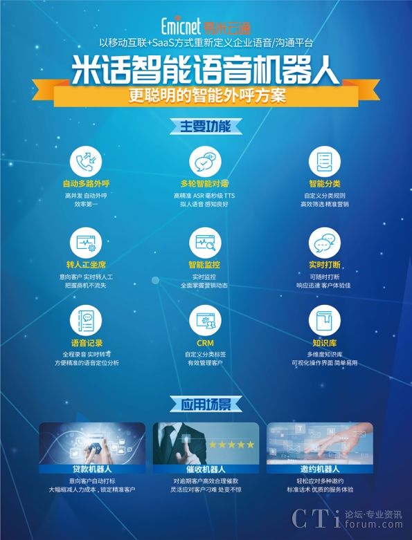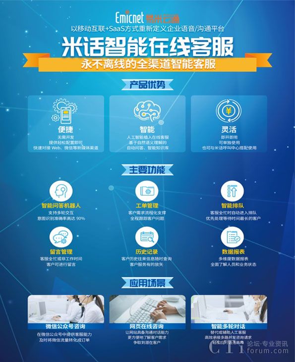 傳統(tǒng)客服模式存在難以解決的弊端,在技術(shù)進(jìn)步的推動(dòng)下,催生了云呼叫中心的誕生,易米云通新一代云呼叫中心就是國內(nèi)市場上的領(lǐng)先者。易米云通專注于以移動(dòng)互聯(lián)+SaaS方式重新定義企業(yè)語音/溝通平臺(tái),構(gòu)建了智能語音機(jī)器人、智能在線客服、智能語音平臺(tái)等眾多智能化工具,完美解決了傳統(tǒng)客服模式的弊端,幫助商家和物流快遞在暴漲的客戶咨詢數(shù)量面前也能輕松應(yīng)對(duì)。
