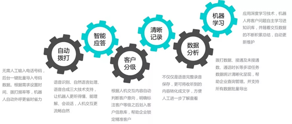 另一方面,人工智能技術(shù)雖然還有待提升,然而在諸如海量線索營銷、簡單業(yè)務(wù)提醒等特定場景下,機(jī)器人的能力和效率卻是遠(yuǎn)高于人類的。目前的外呼機(jī)器人產(chǎn)品,底層的自然語言理解、上下文關(guān)聯(lián)、語音識別、語音合成等技術(shù)已經(jīng)較為成熟,機(jī)器人是可以替代人工完成部分海量、簡單工作的。