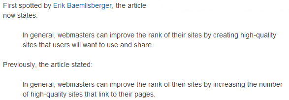 (上文字引用自:http://searchenginewatch.com/article/2276448/Google-Improve-Your-Sites-Rank-by-Building-High-Quality-Sites-Not-links)