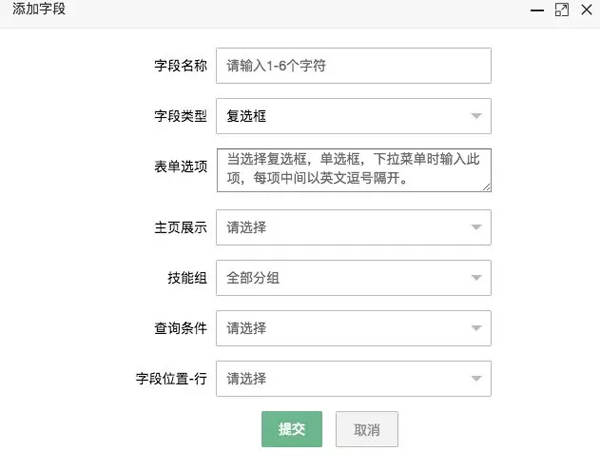 管理員可在自定義表單管理添加新的表單內(nèi)容,此內(nèi)容將在客戶信息列表中作為列表字段和搜索條件使用。自定義表單的樣式分為單行文本,多行文本,單選,多選,拉下菜單5類(表單選項間隔必須以英文的逗號隔開)。