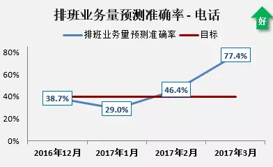 - 通過梳理和改善預(yù)測方式使電話業(yè)務(wù)排班業(yè)務(wù)量預(yù)測準確率呈現(xiàn)出顯著的提升趨勢
