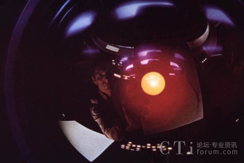 圖為1968年影片《2001太空漫游》中的超級(jí)電腦哈兒(HAL),它眼睛里映出的是男主角戴維﹒鮑曼(Dave Bowman)。戴維想讓哈兒做的不過(guò)就是打開(kāi)救生艙門。圖片來(lái)源:EVERETT COLLECTION