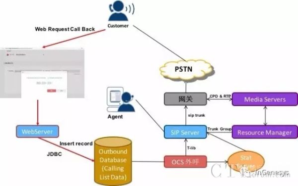 G廠OCS外呼服務方案主要是為了大規(guī)模大容量自動外呼而設計,當然也支持小容量高價值的Preview預覽式方式外呼。它的核心機制在于話單數據庫CallingList的人工或者自動化導入和OCS的根據Campaign Group的自動提取。再依托于WebService的情況下,前端由客戶指定要求Callback,輸入Desired Time和相關的業(yè)務信息,后端經過號碼部分邏輯過濾后,以JDBC的方式寫入外呼的話單數據庫中。具體示意如下圖: