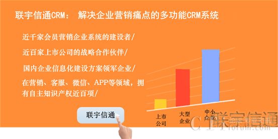 作為國內(nèi)企業(yè)信息化建設(shè)領(lǐng)域的領(lǐng)軍企業(yè),聯(lián)宇信通在為國內(nèi)近萬家客戶提實(shí)施系統(tǒng)建設(shè)方案的過程中,總結(jié)出了關(guān)于大數(shù)據(jù)應(yīng)用的一套完整的方案,并已成功幫助眾多企業(yè)在大數(shù)據(jù)應(yīng)用領(lǐng)域取得了輝煌的業(yè)績。下面簡單看下聯(lián)宇信通是如何將大數(shù)據(jù)與CRM系統(tǒng)糅合在一起的吧!