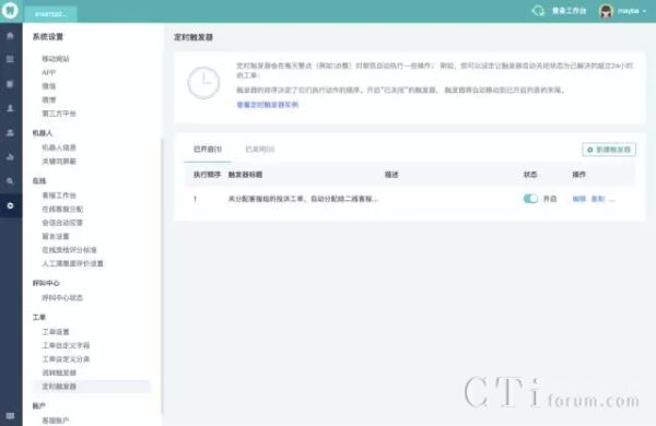 過去有很長一段時間,客服部門都是單兵作戰(zhàn),但事實是30%的客戶問題需要多部門協(xié)同解決。智齒客服工單系統(tǒng)為了滿足工單在客服系統(tǒng)中自動流轉(zhuǎn)的需求,新增了流轉(zhuǎn)觸發(fā)器模塊,當(dāng)工單被創(chuàng)建或被更新時,工單會自動匹配流轉(zhuǎn)觸發(fā)器。若問題工單符合流轉(zhuǎn)觸發(fā)器的條件,將會自動執(zhí)行觸發(fā)器的動作,當(dāng)建立多個流轉(zhuǎn)觸發(fā)器時,工單按照執(zhí)行順序匹配流轉(zhuǎn)觸發(fā)器,工單自定義分類最多可支持三級分類。除此之外,為滿足企業(yè)工單在客服系統(tǒng)中定時處理的需求,新增定時觸發(fā)器模塊,每個整點時,工單會自動匹配定時觸發(fā)器。若工單符合定時觸發(fā)器的條件,將會自動執(zhí)行觸發(fā)器的動作。當(dāng)建立多個定時觸發(fā)器時,工單按照執(zhí)行順序匹配定時觸發(fā)器。