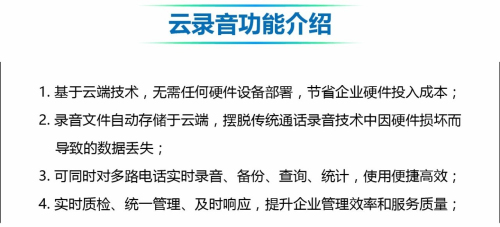 - 對于互聯(lián)網(wǎng)金融企業(yè)而言,通話實時“云錄音”: