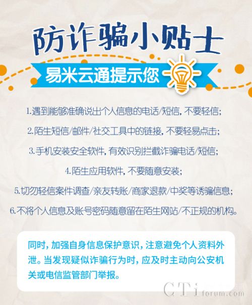 作為反信息詐騙聯(lián)盟一員,易米云通謹(jǐn)遵規(guī)范、穩(wěn)定、安全的原則,嚴(yán)厲打擊信息詐騙,為推動移動互聯(lián)網(wǎng)安全生態(tài)體系建設(shè)貢獻(xiàn)一份力量!