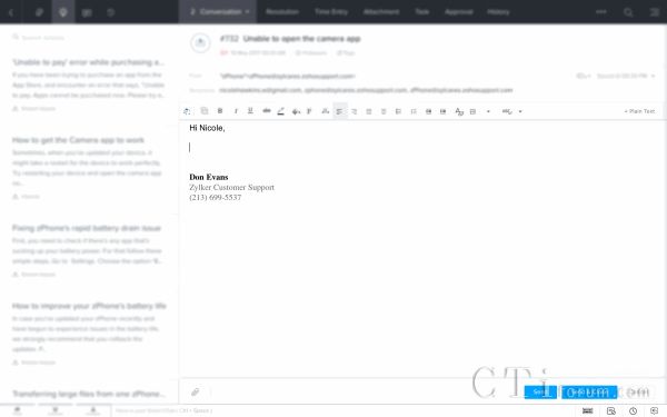 現(xiàn)在有了工單快速回復功能后,不離開當前工單列表即可查看某個工單請求及相關信息、可用的解決方案等,并直接回復。這加速了客服處理工單的速度。