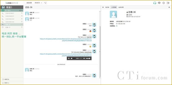 該呼叫中心平臺(tái)的界面設(shè)計(jì)人性化,操作簡(jiǎn)單、方便??头c用戶交流時(shí),可以使用文字、表情、語音、圖片、位置等多媒體消息交互;支持在聊天的過程中,將聊天轉(zhuǎn)交給其它指定的座席,或加入指定其它座席參與到該聊天中,形成三方會(huì)議;在企業(yè)無人值班時(shí),可啟用客戶留言功能,上班時(shí)間再查看處理。
